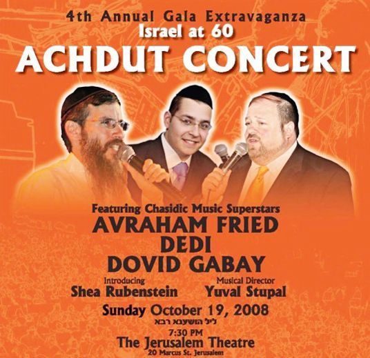 עוד מופע שאמור להיות במרכז העניינים יוצא בליל הושענה רבה 'אברהם פריד, דדי גראוכר, ודוד גבאי, המופע יוצא ב19 באוקטובר בתיאטרון ירושלים. ניהול מוזיקאלי: יובל סטופל. המופע מיועד לבעלי אמצעים מ75$ לסטנדרט ועד 250$ לvip .