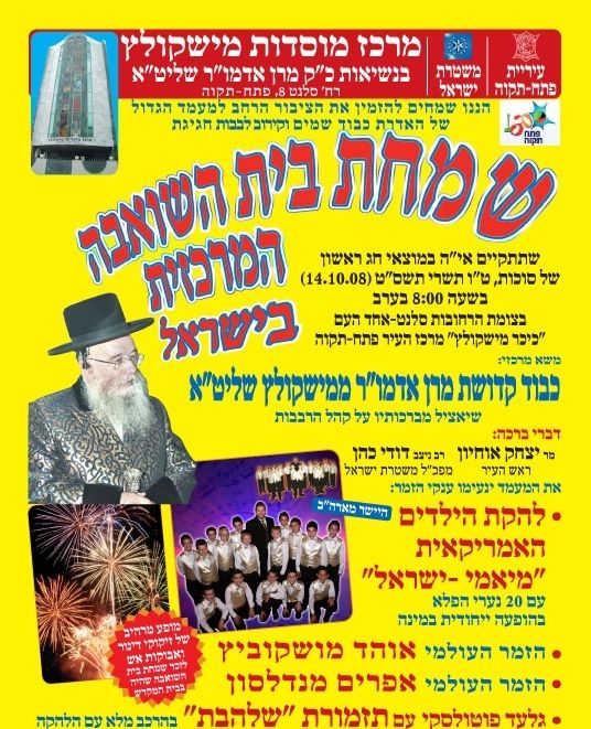 הראשונה והעדכנית לעת עתה היא שמחת בית השואבה המרכזית בישראל אשר מארגנים מוסדות מישקולץ פ"ת האירוע יתקיים במוצאי חג הראשון של סוכות ב"כיכר מישקולץ" במרכז פ"ת.